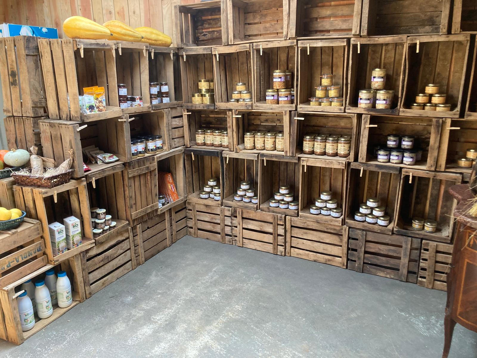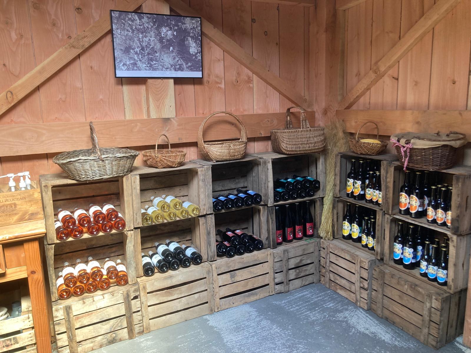 Accolé à la distillerie, notre cellier est un espace partagé entre tous les voyageurs de la ferme. Vous y trouverez nos huiles essentielles, nos hydrolats, nos boissons aux plantes Diz et Dizane, ainsi qu’une sélection de produits de producteurs voisins : conserves, confitures, viandes, oeufs de la ferme, légumes, vins, bières … Tout est au maximum local et artisanal, et la plupart des choses que vous voyez sur les étagères ont poussé ou ont été fabriquées à quelques kilomètres d’ici.